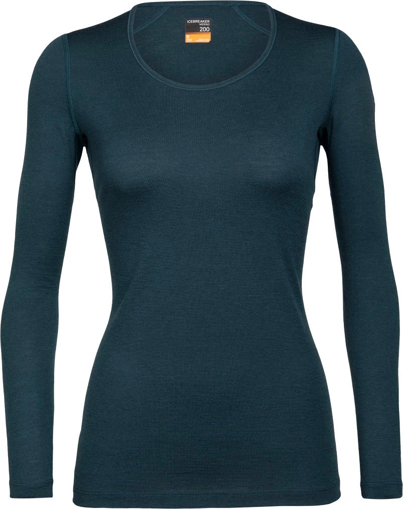 The Women’s Merino 200 OASIS Long Sleeve Scoop by icebreaker is an everyday merino base layer for casual comfort mixed with technical athletic performance. Merino wool is soft, wicks moisture, dries quickly and fights odours naturally. Offset shoulder seams and flatlock seams prevent chafing and rubbing. Set-in sleeve construction with a raglan back and underarm gussets enhance movement. The feminine scoop neck and drop tail hem round out the top.