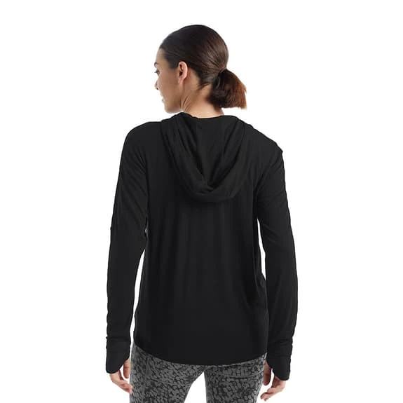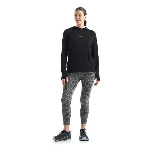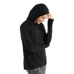 The Icebreaker Cool Lite Hoodie for women is a lightweight, breathable hoodie designed for aerobic days outdoors. It features Cool-Lite merino knitted fabric that wicks away moisture.