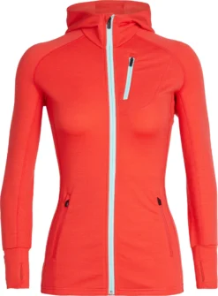 The women’s Quantum Long Sleeve Zip Hood delivers maximum comfort and mobility in a sleek and breathable silhouette. Its made with 260gm of merino terry fabric with Lycra for extra stretch. Breathable eyelet mesh panels placed along the underarms improve ventilation. Merino terry is soft against the skin, has natural odor-resistant properties, and retains sufficient warmth for its low weight. This design makes the women’s Quantum hoody an ideal piece for backcountry ski-tours, while it’s practical details and streamlined appearance make it perfect for commutes to the office or gym.