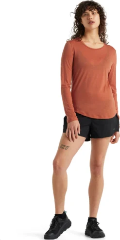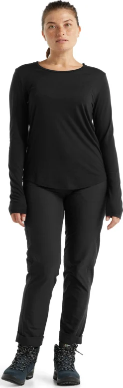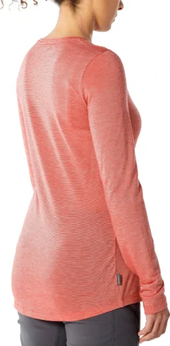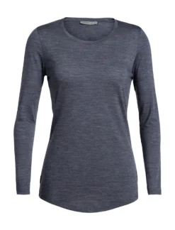 The Women’s COOL-LITE SPHERE Long Sleeve Low Crewe by icebreaker is an everyday comfort base layer when you need warmth without bulk. The merino wool-blend fabric is cool in the heat and warm in the cold. Merino wool wicks moisture, dries quickly and fights odour naturally. Corespun construction keeps soft merino next to skin. The neck is cut wide and the hem drops for extra coverage.